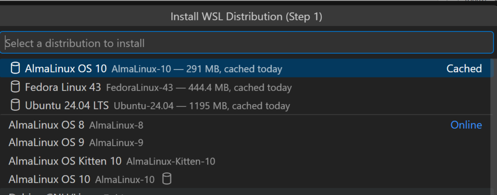 WSLアイコンをクリックすると、インストール済みディストリビューションが一覧表示されます。